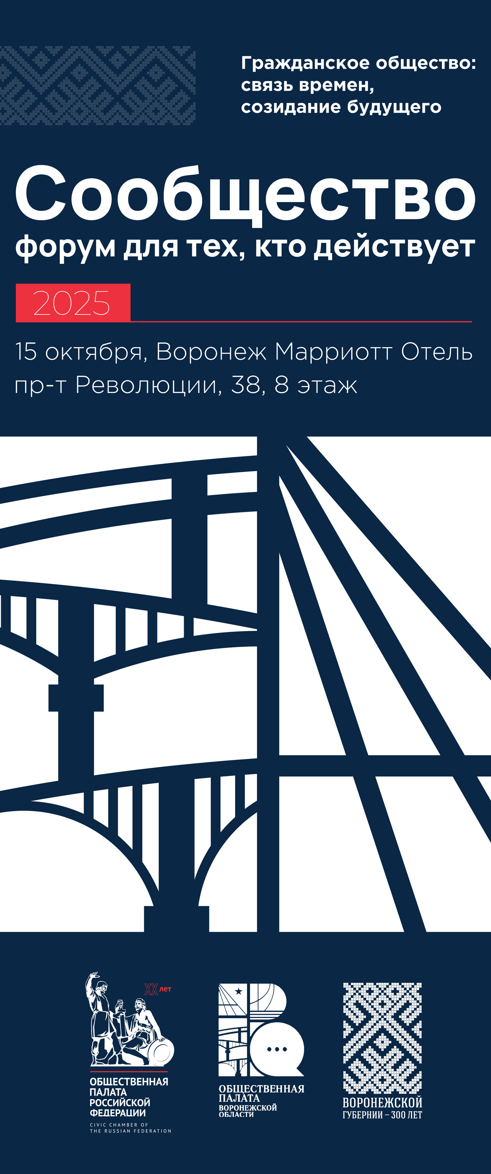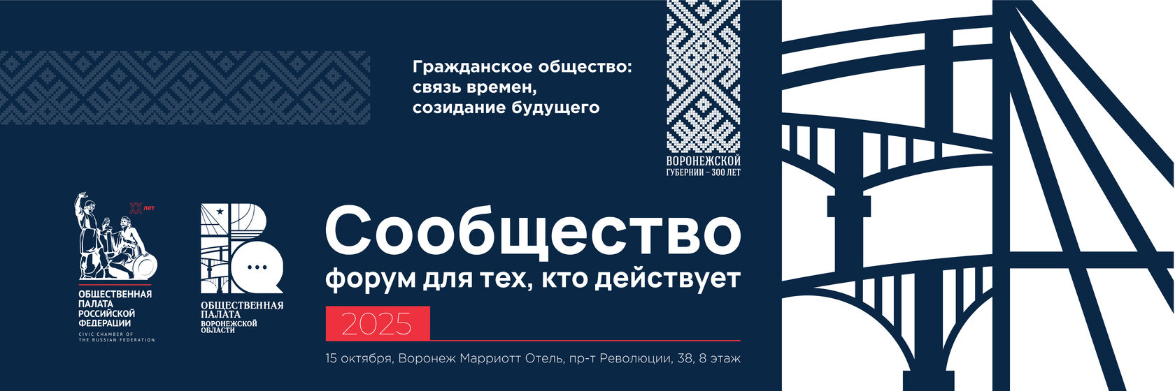 Форум «Сообщество» — это открытая площадка для трехстороннего диалога между властью, бизнесом и обществом. Цель — повышение качества разработки и реализации социальных проектов и развития межсекторных проектов. Традиционно форум проводит Общественная палата РФ в разных округах страны совместно с местными отделениями, чтобы оценить состояние гражданского общества и обсудить актуальные вопросы с учетом региональной специфики. Приглашаю вас присоединится к форуму в Воронеже, чтобы вместе определить и масштабировать лучшие социально ориентированные практики в нашем регионе.